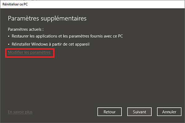 Réinstallation locale : la réinstallation de Windows se fait à partir de votre version actuelle.