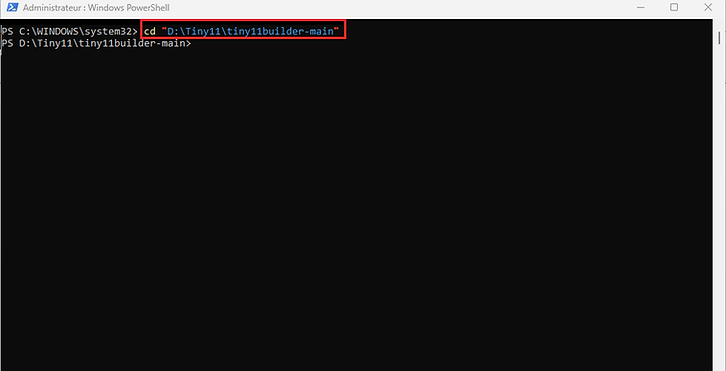 Grâce à cette manipulation, les scripts de Tiny11 Builder peuvent être exécutés.